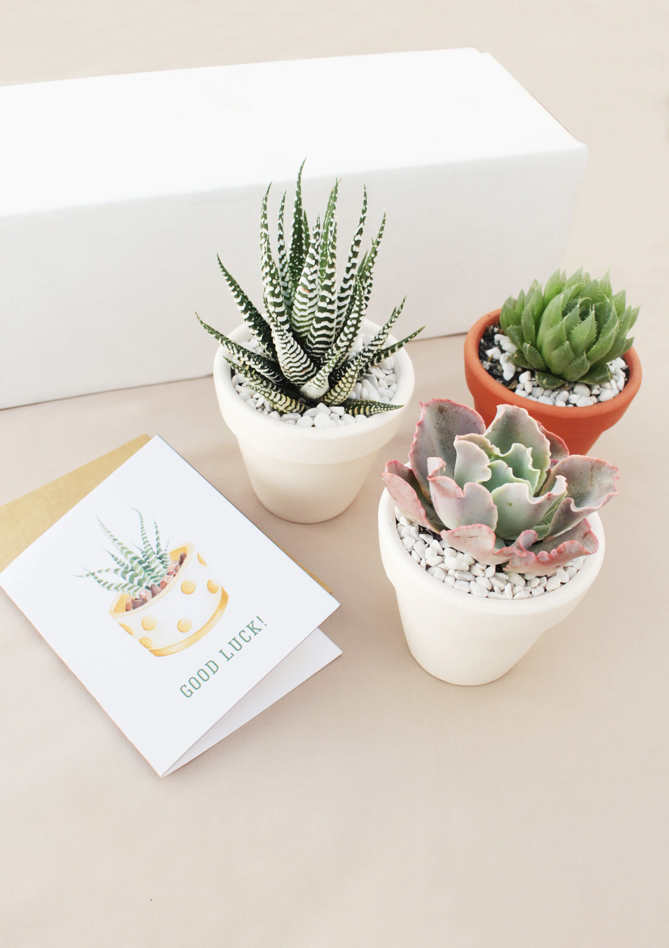 Succulents are excellent gifts for travelers and friends who claim they have black thumbs but also great for plant lovers. Last Christmas we sent Rob’s sister a succulent subscription from Succulents Box and it turns out she did the same for us! We loved the little pots and succulents that arrived and they were all neatly packaged and adorable. They’re all still alive and well despite many multi-week travel - which I’ll hopefully get around to sharing soon!